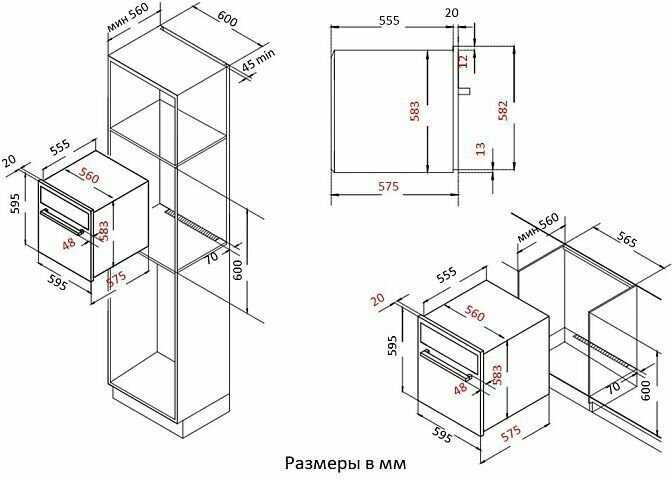 - Внешняя поверхность дверцы и панель управления не нагреваются выше 45°C, что исключает ожоги и повреждение мебели.
