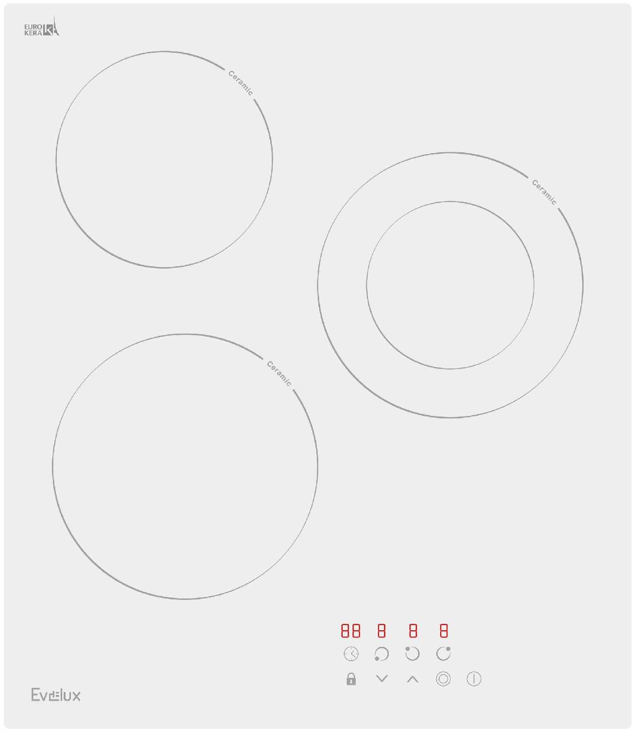- Функция блокировки панели предотвращает случайное включение конфорок детьми.