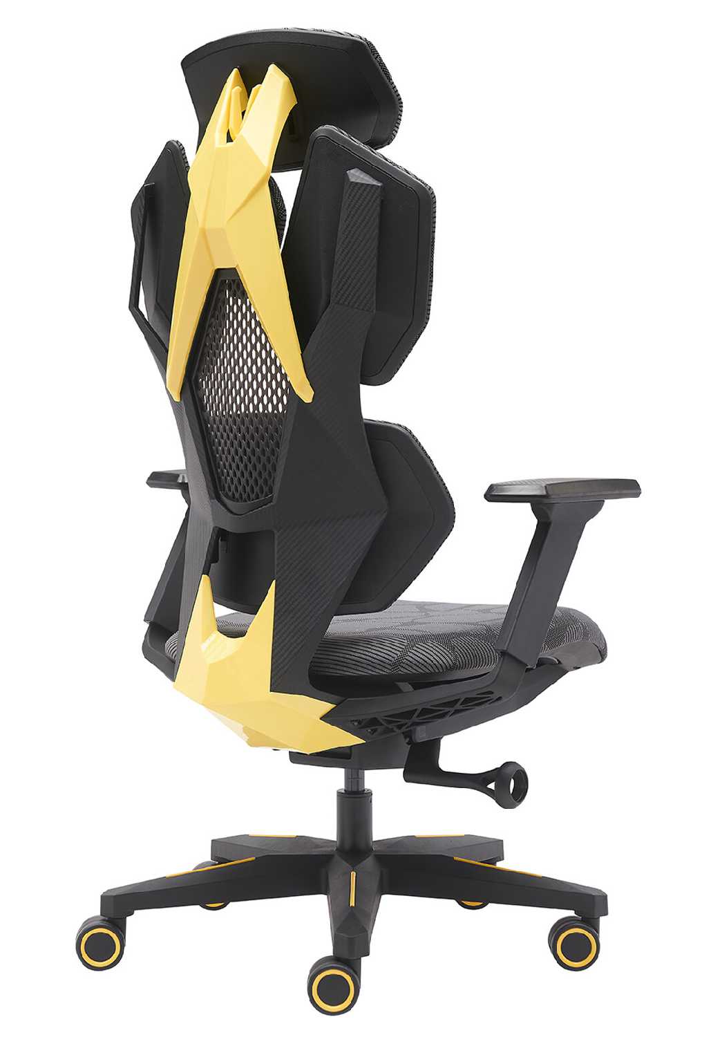- Черно-красная или серая экокожа с сетчатой вставкой по центру спинки создает динамичный геймерский вид, вписывается в игровую зону.
