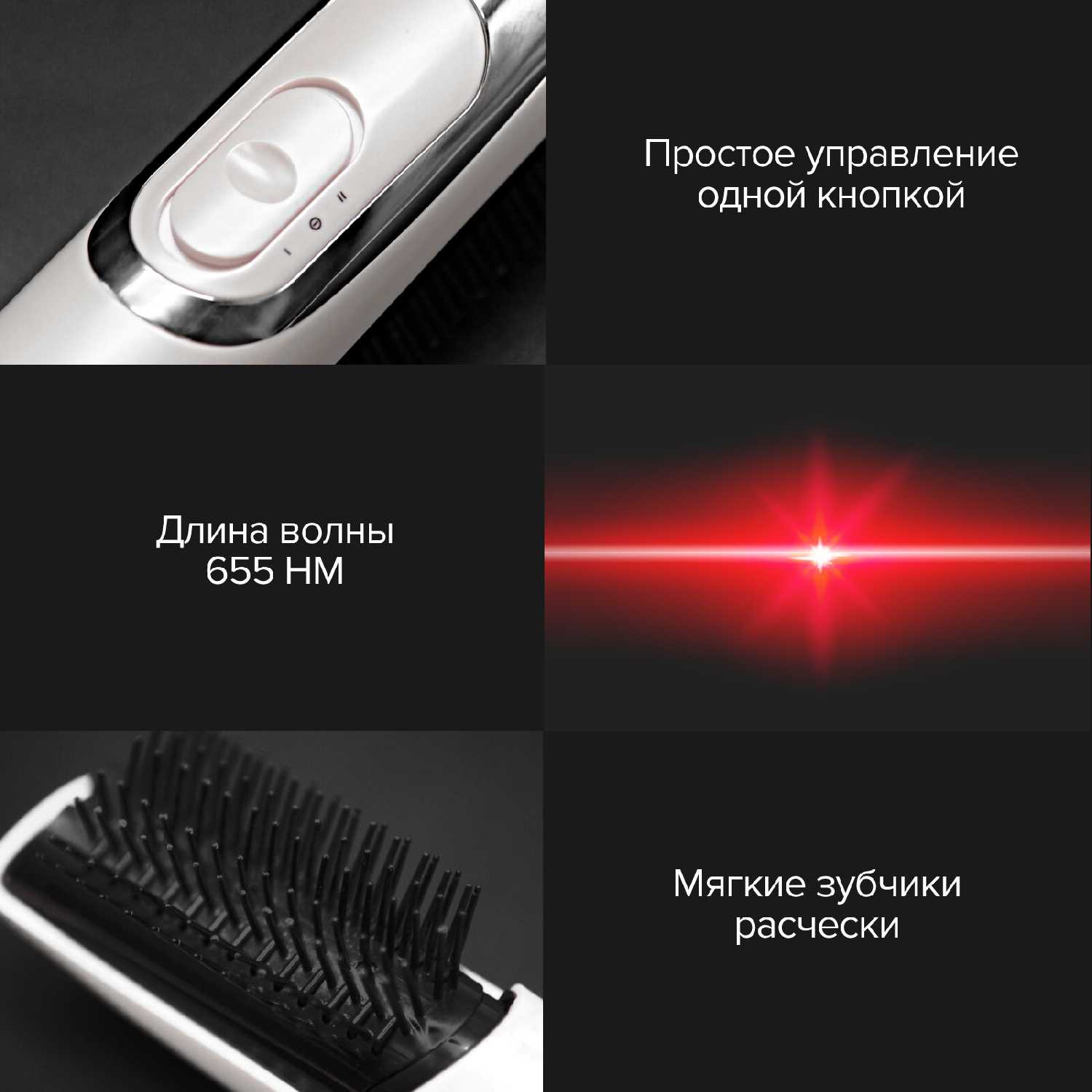 - Лазерные диоды регулируют работу сальных желез, позволяя сохранять чистоту волос до 3 дней.