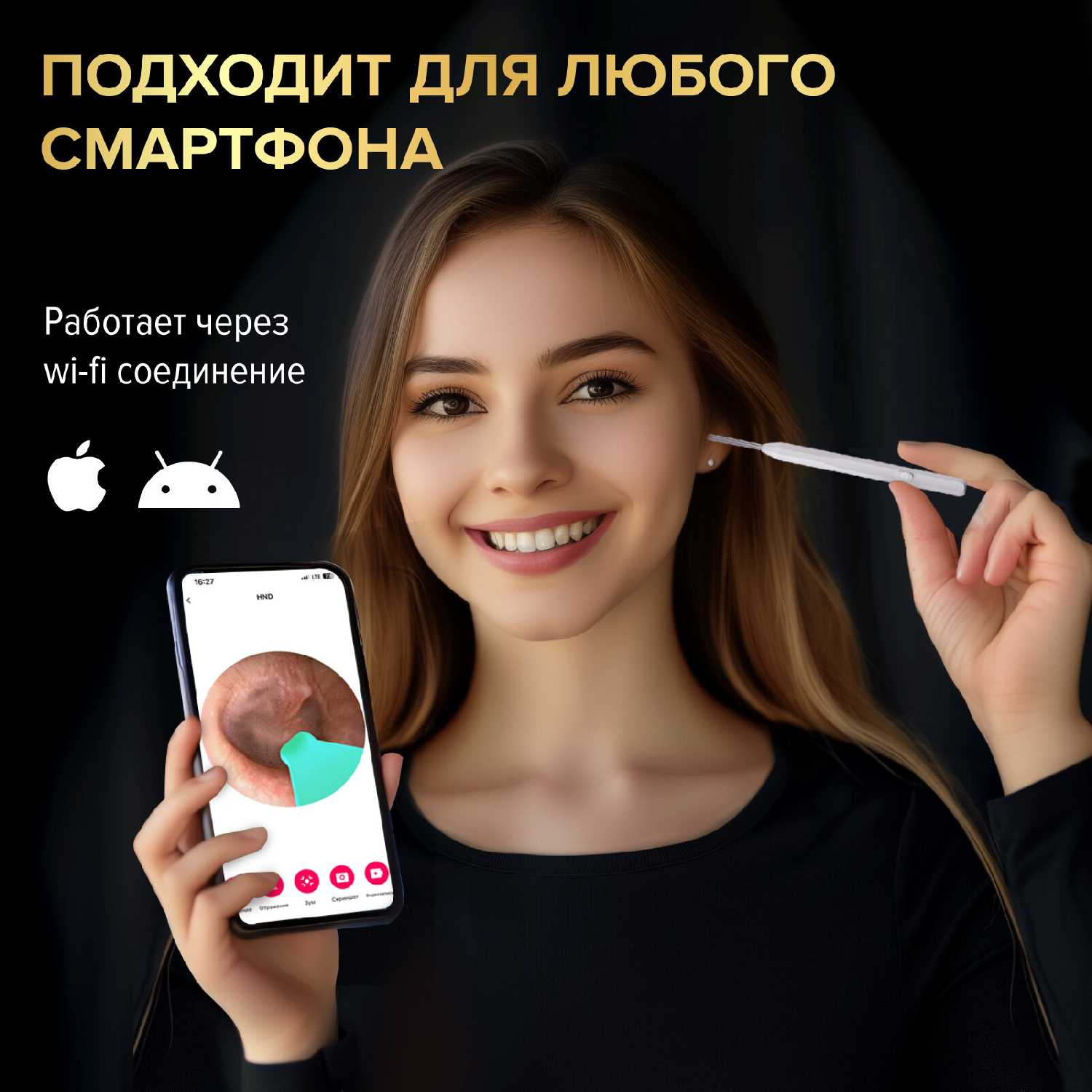 | Дополнительная информация : | Ушная палочка подключается к телефону через Wi-Fi |