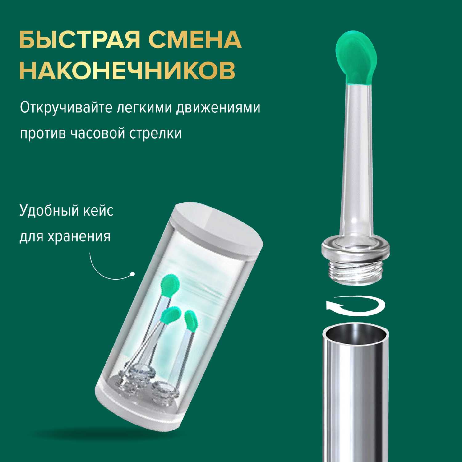 - Устраняет "слепые зоны" при очистке, что критично для пользователей с анатомическими особенностями ушей.