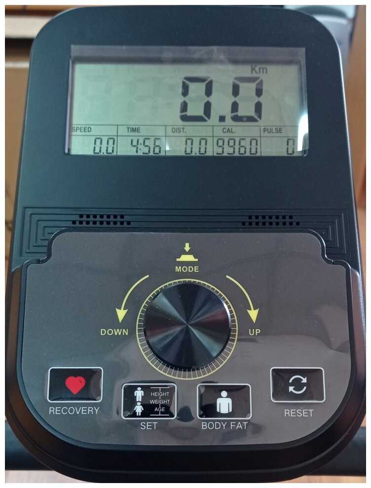 Дисплей без подсветки показывает базовые данные: скорость, дистанцию, калории и пульс. Нет программ тренировок или памяти предыдущих сессий. Для фиксации одного параметра (например, пульса) требуется ручной выбор при каждом включении.