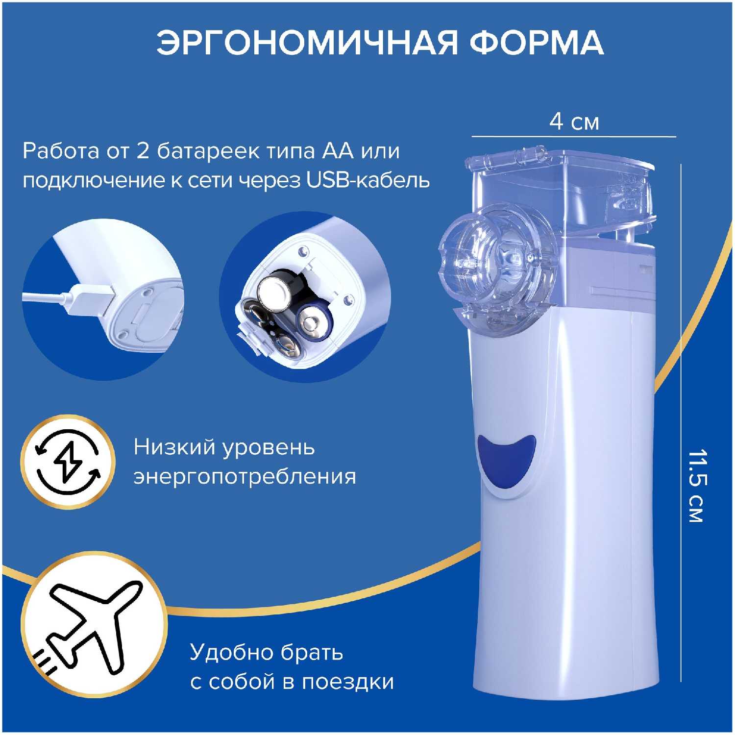 Небулайзер работает как от сети через длинный USB-кабель, так и от батареек типа АА, что критично для постельного режима или отсутствия розеток. Некоторые пользователи рекомендуют использовать аккумуляторы вместо одноразовых батареек из-за их быстрой разрядки. Подключение к power bank расширяет мобильность. -