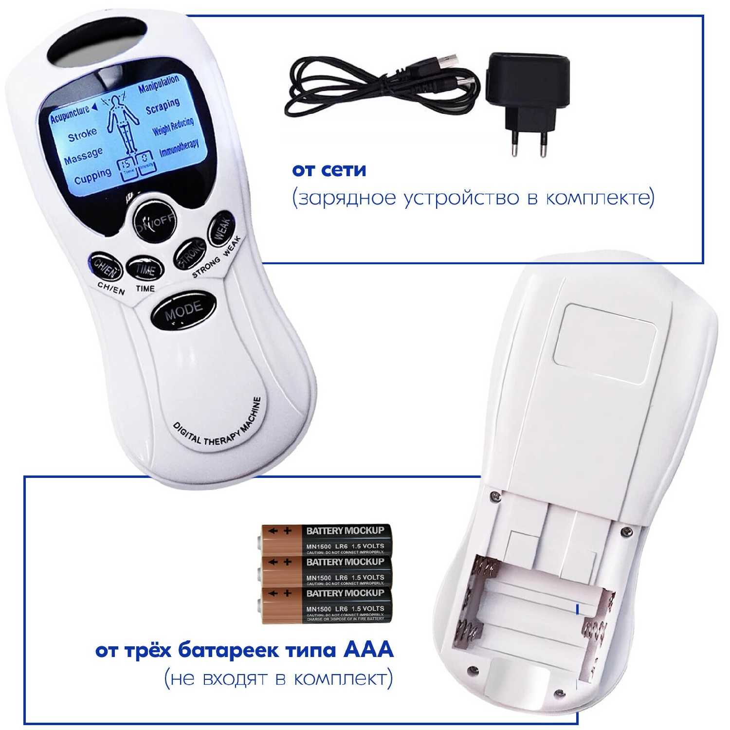 В базовой комплектации присутствуют электроды, провода, гелевые подушки и сетевой адаптер. Однако некоторые пользователи рекомендуют сразу докупить запасные электроды, так как они быстрее изнашиваются при интенсивной эксплуатации. -