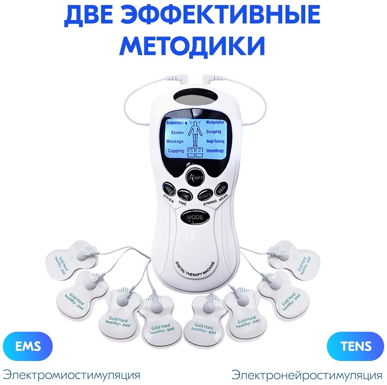 действительно крутой и рабочий миостимулятор. Понятная и подробная инструкция НА РУССКОМ языке в комплекте. Рекомендую кстати ее перед применением прочитать. Удобно что прибор можно использовать и от сети и с помощью батареек, кому как удобнее. Ничего дополнительно покупать не нужно. Всего 8 режимов, но я всеми пользоваться не успеваю) в основном режим массажа только после тренировок и бассейна) Остальные от случая к случаю) и тем не менее оооочень рекомендую