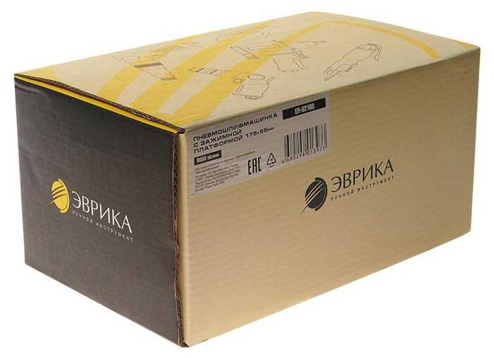 | Комплектация : | Пневмошлифмашинка с зажимной платформой 175х95мм 8000 об/мин ЭВРИКА ER-82160 |