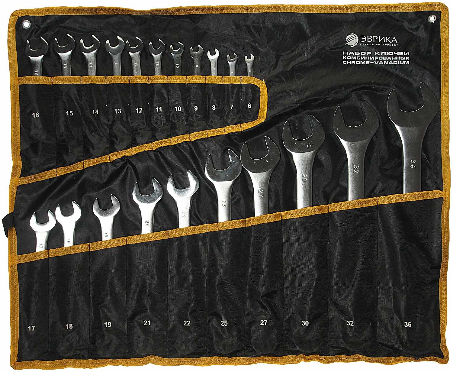 Отзывы о Набор ключей комбинированных ER-10210 (6,7,8,9,10,11,12,13,14,15,16,17,18,19,21,22,25,27,30,32,36мм) CrV сатинированных планшет 21 предмет эврика