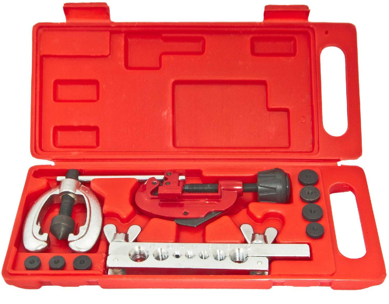 - - работал таким набором иногда не очень удобно, тоесть планка со временем плохо зажимает трубу а ещё надо точно попасть расширителем в центр трубы если попал немного в сторону воальцует криво
