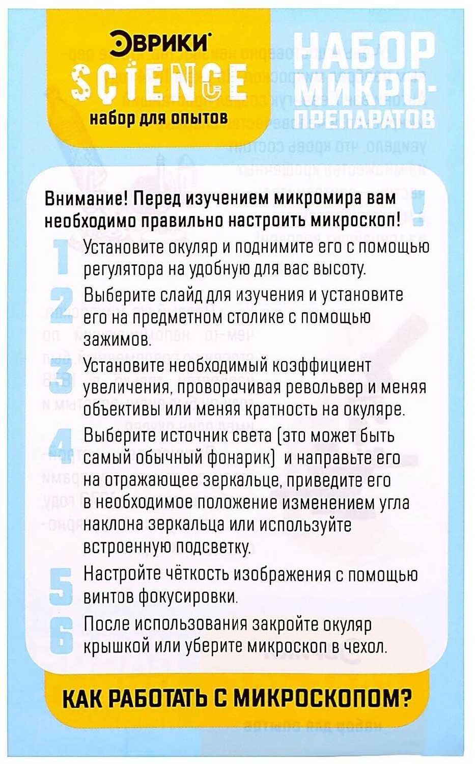 | Дополнительная информация : | Занятия с микроскопом расширяют кругозор ребёнка, развивают любознательность, внимательность и прививают тягу к знаниям. |