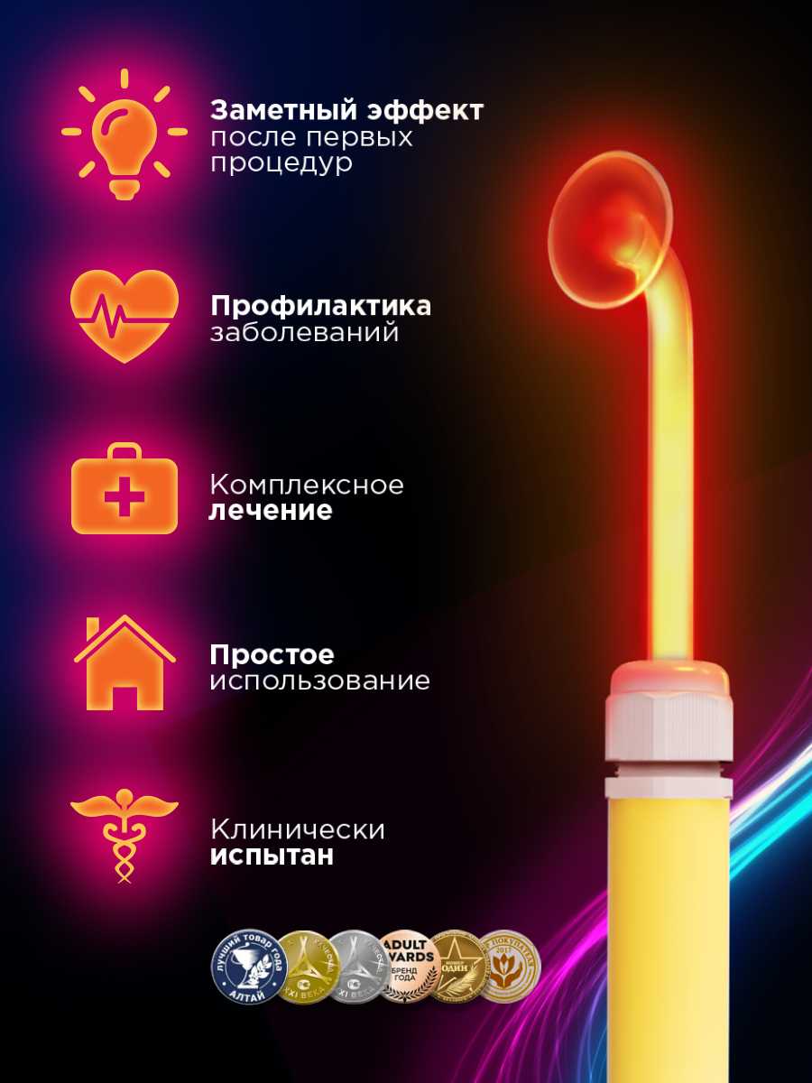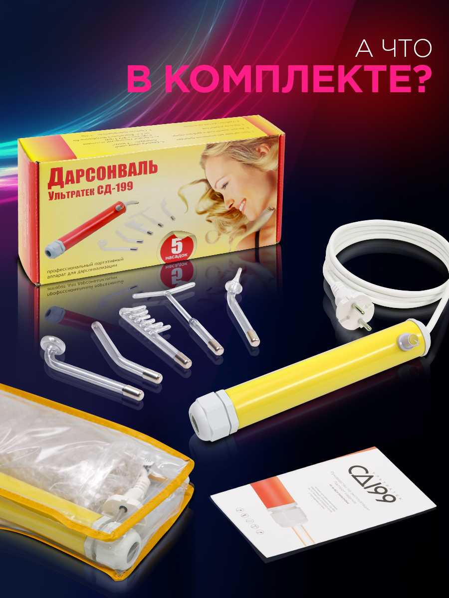 - прибор, - грибовидная насадка, - гребешковая насадка, - ректальная насадка, - ушная насадка, - спинная (шейная) насадка-рогатка, - инструкция по применению. |