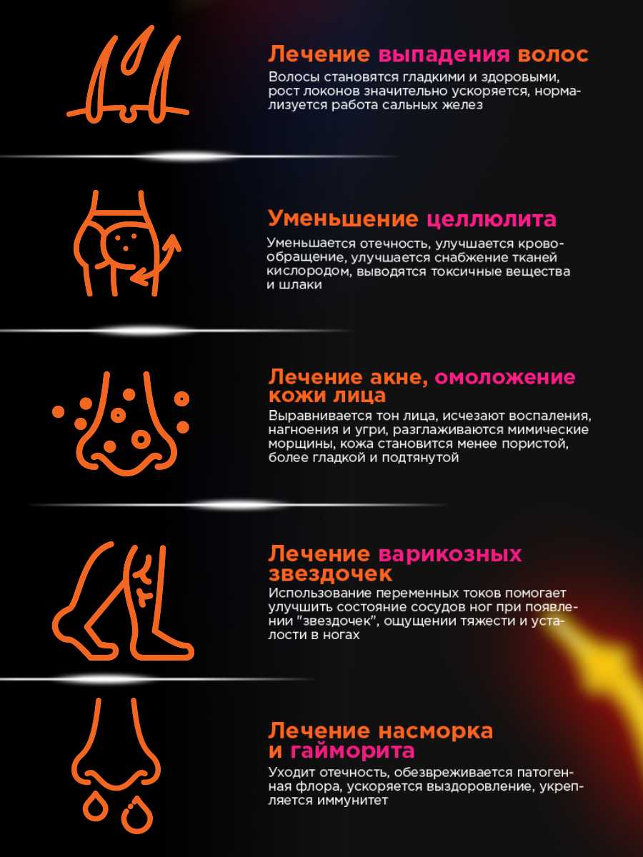 - + Вначале от потрескивания казалось что ударит током, но теперь пользуюсь смело. Внимательно прочитала инструкцию: много не значит лучше. Но по факту : чем сильнее мощность - тем действенее.