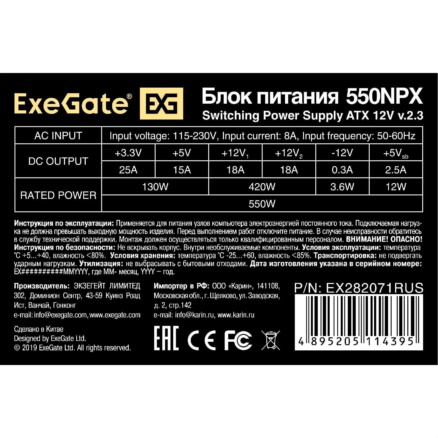 Отзывы о Блок питания ExeGate 550NPX (550W)