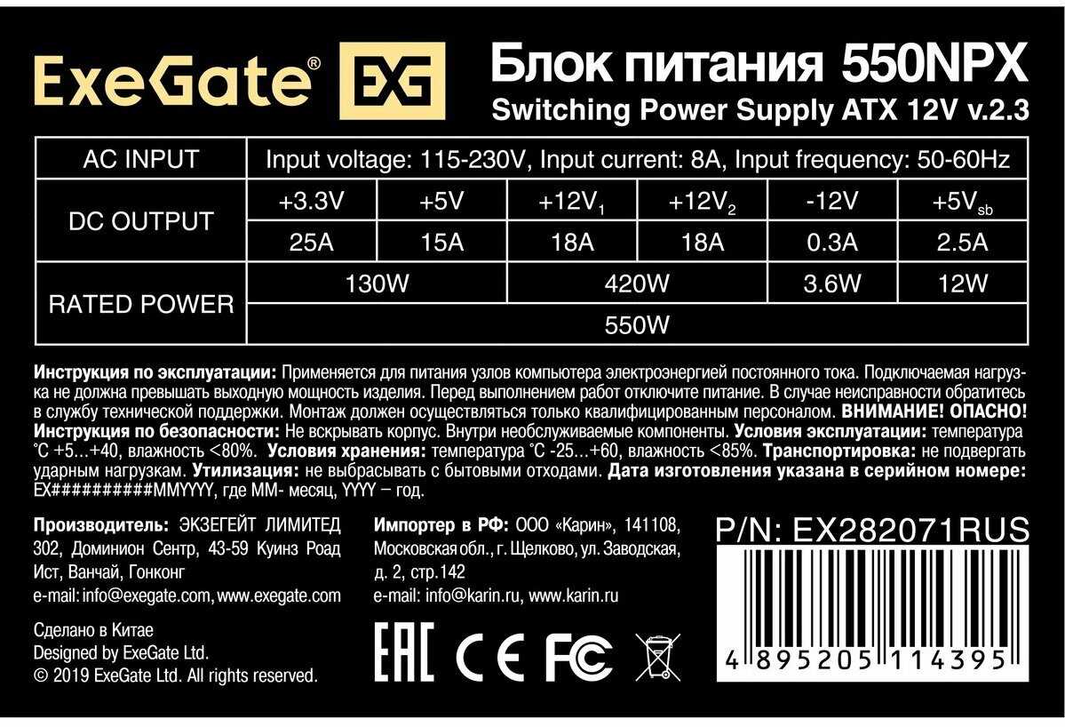 Лучшие цены сегодня на ExeGate 550NPX (550W)