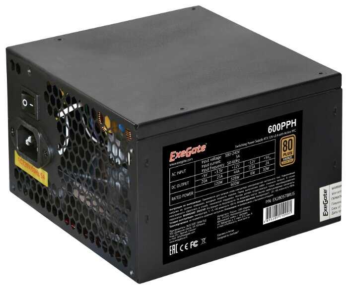 Отзывы о Блок питания ExeGate 600PPH 80 PLUS Bronze 600W (кабель с защитой от выдергивания)