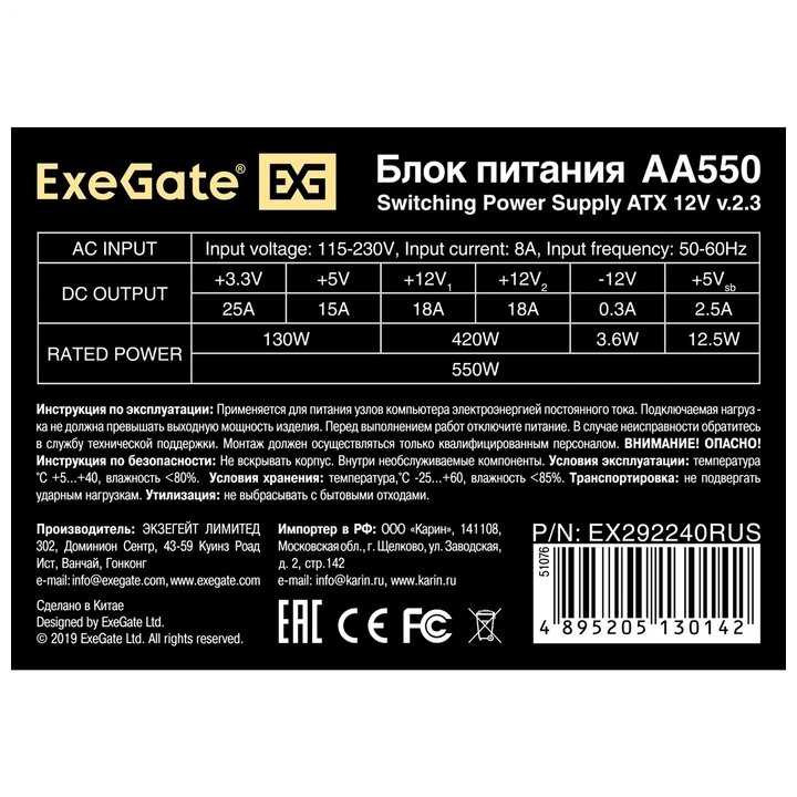 Отзывы о Блок питания ExeGate AA550 (550W)