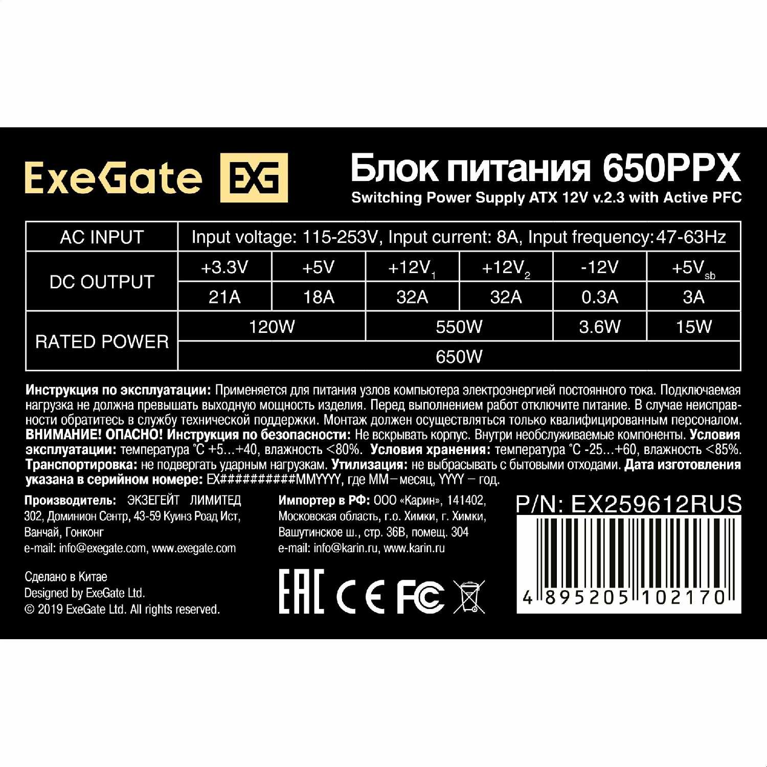 Характеристи ExeGate ATX-650PPX