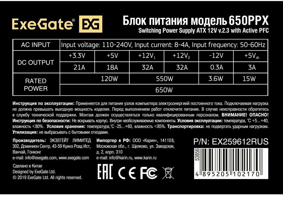 Отзывы о Блок питания ExeGate ATX-650PPX 650W