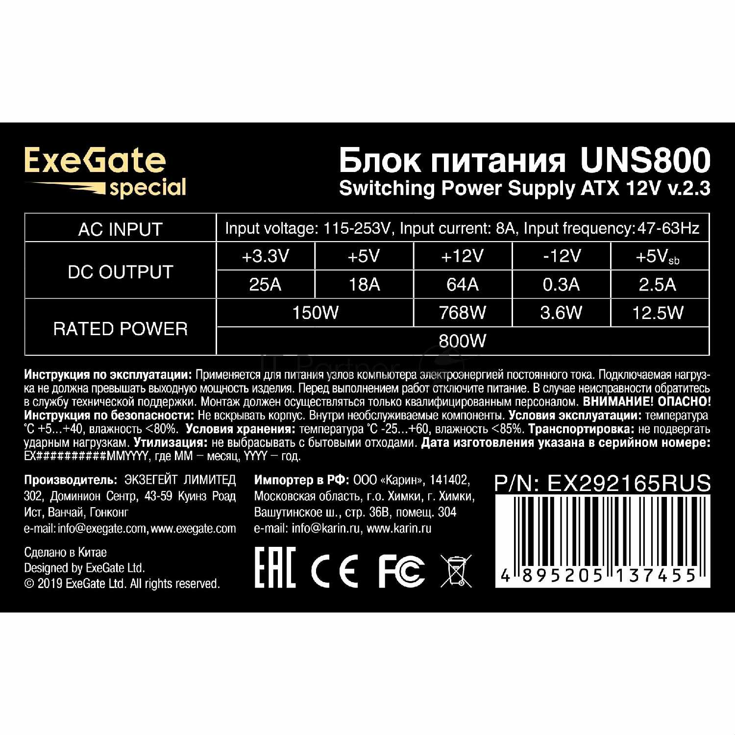 Характеристи ExeGate Блок питания (EX292165RUS)