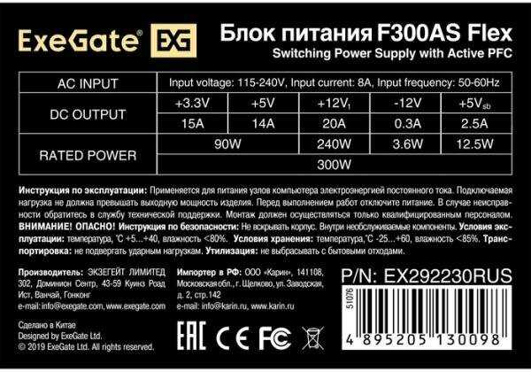Характеристи ExeGate Блок питания (EX292230RUS)