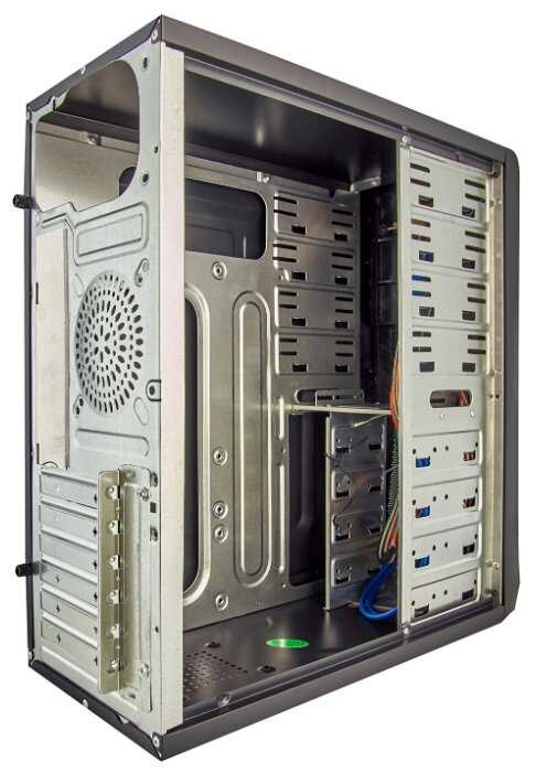 - + Дешевый, компактный, удобное расположение кнопок и USB портов, хорошая вентиляция при установке дополнительных вентиляторов, нет проблем при установке длинных видеокарт