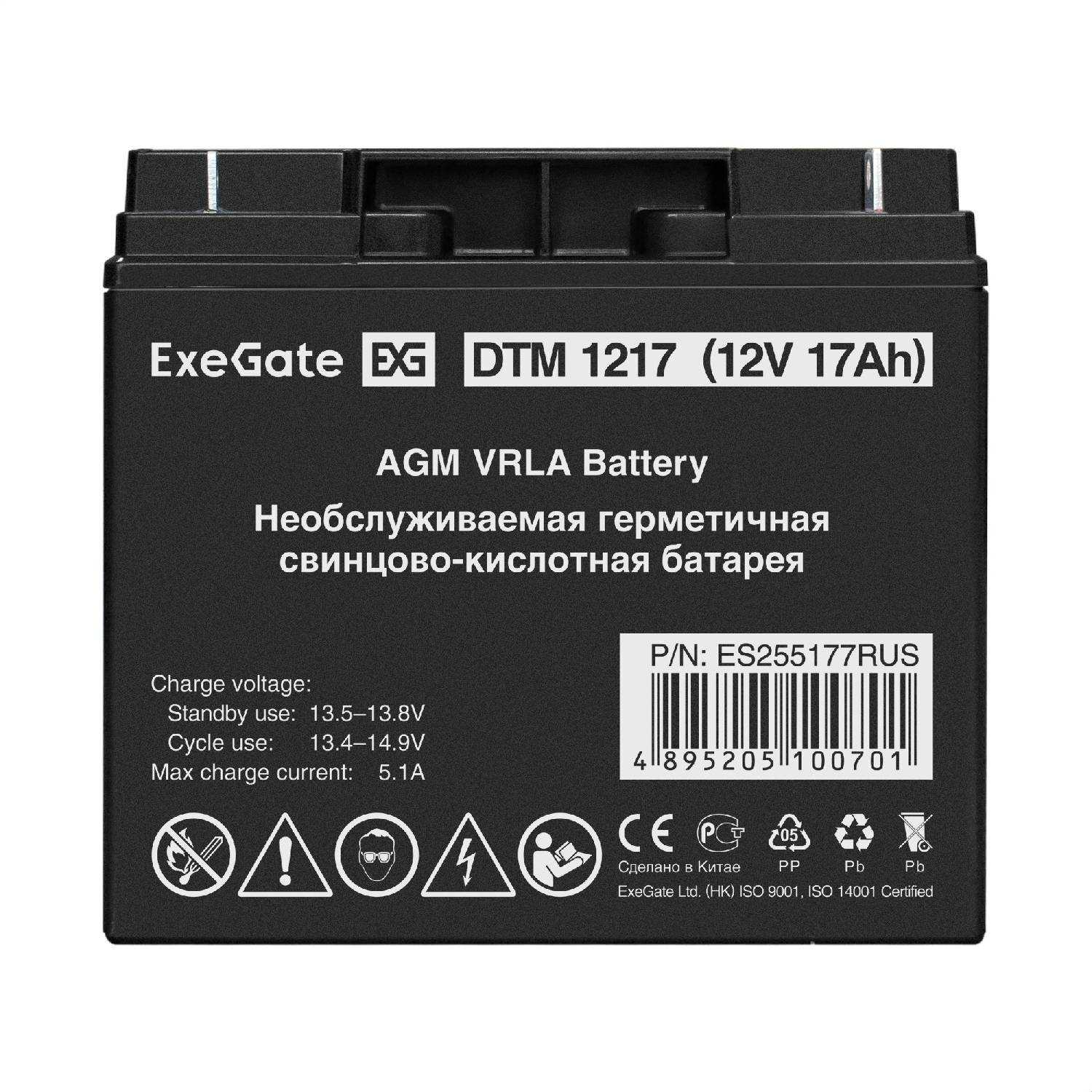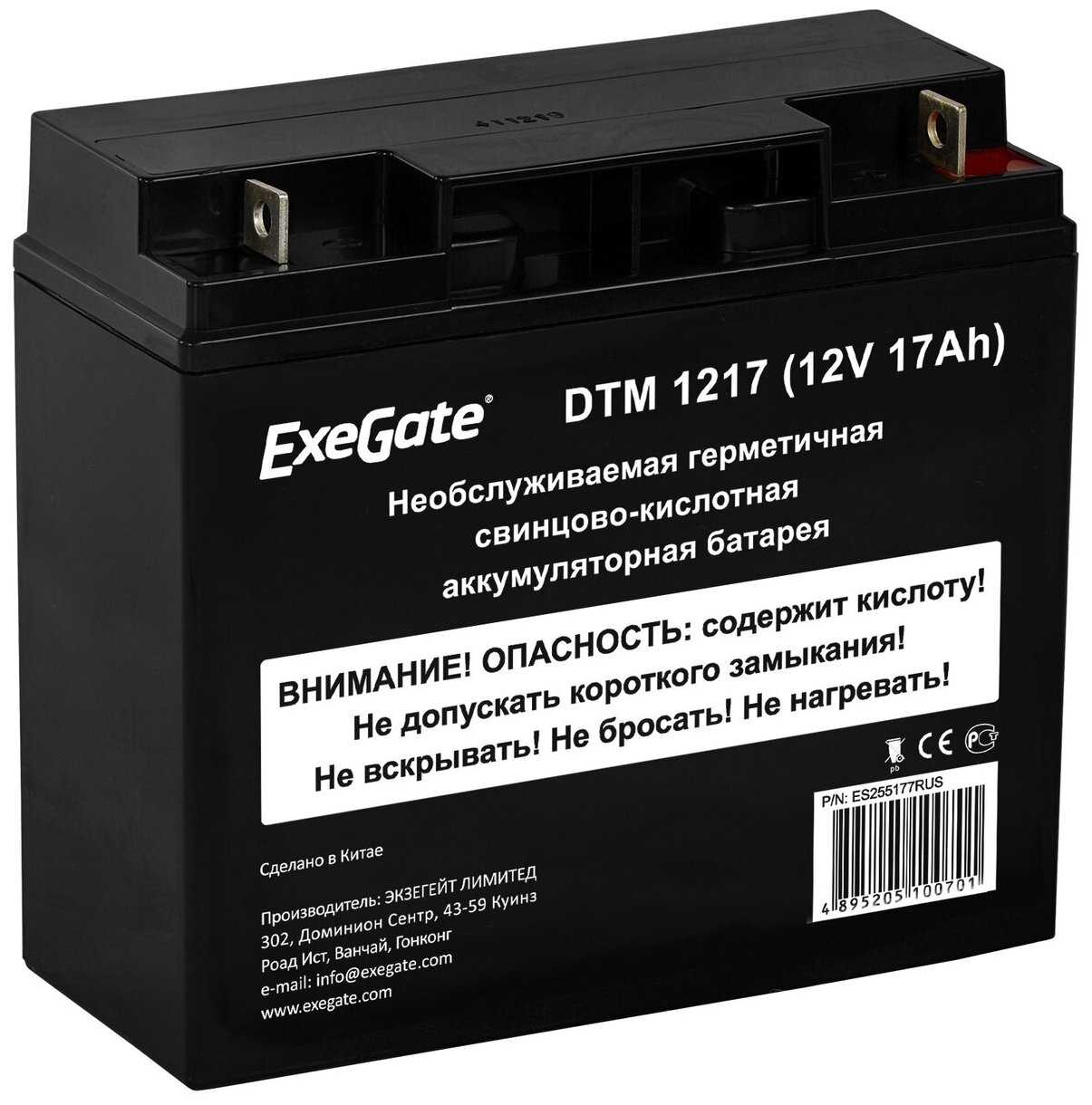 Отзывы о Аккумуляторная батарея ExeGate ES255177 12В 17 А·ч