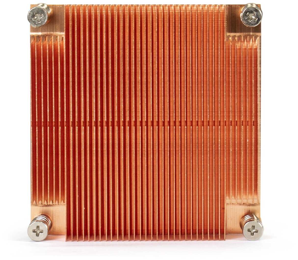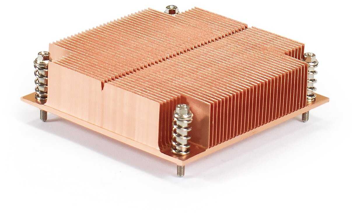 - + Медный!!! (теплопроводность меди в 2 раза больше аллюминия). Крепеж винтами с пружинками. Массивный-484 грамма. Брался под тихую систему в маленьком корпусе.