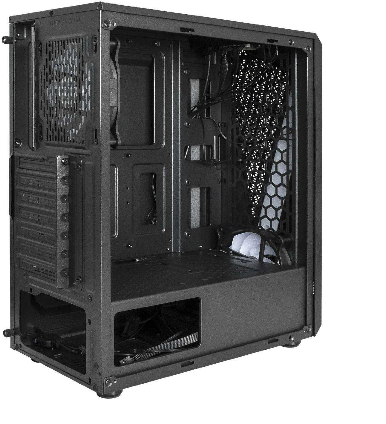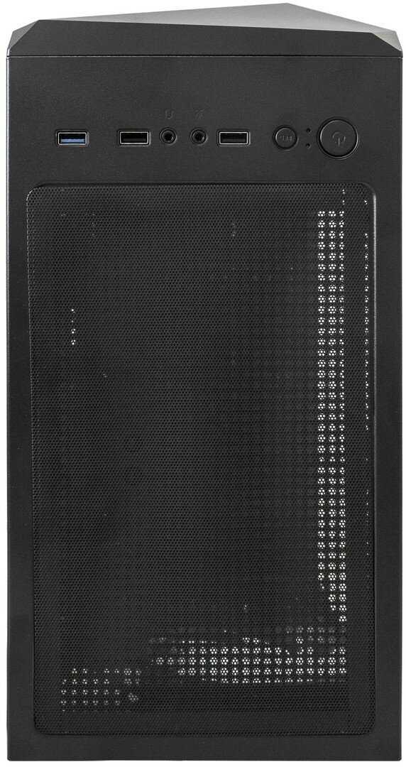 Продуваемость оценивается как хорошая для сборок среднего уровня (процессор + видеокарта с TDP до 200 Вт). Перфорированная передняя панель и два предустановленных вентилятора (вдув спереди + выдув сзади) обеспечивают базовый воздушный поток. Для мощных систем рекомендуется докупать дополнительные вентиляторы на переднюю панель. -