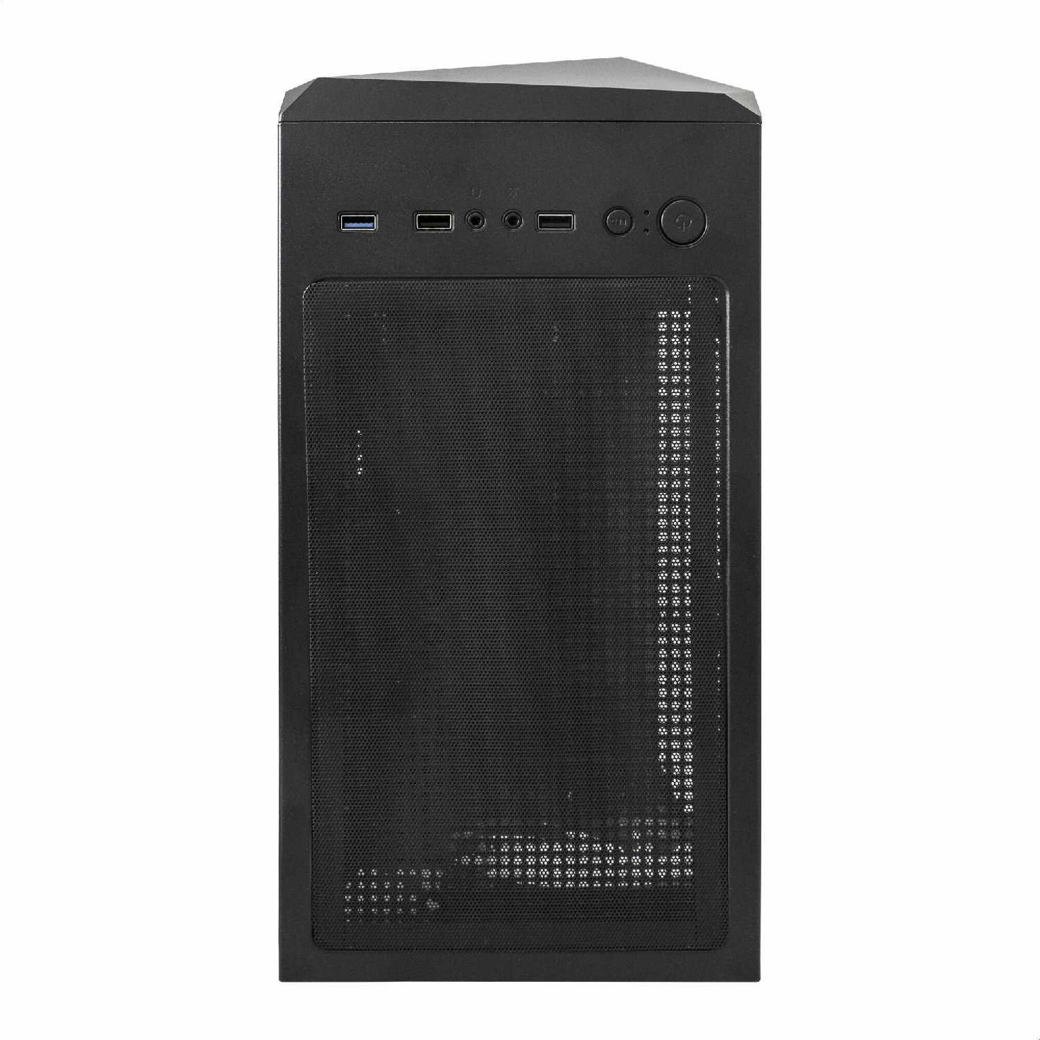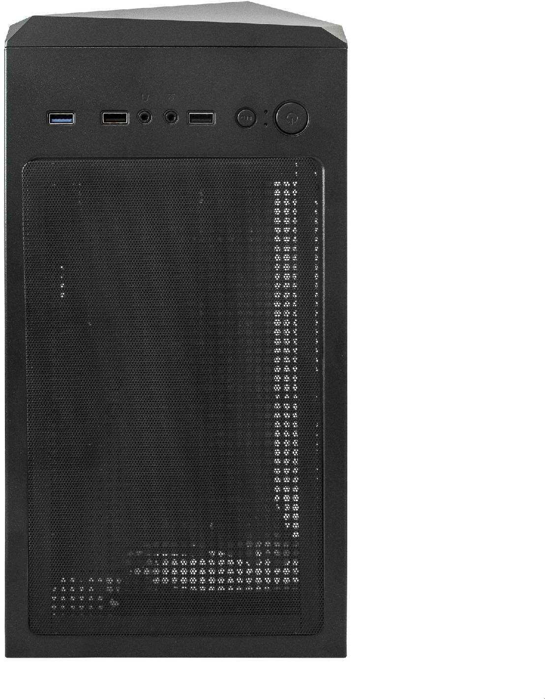 Продуваемость оценивается как хорошая для сборок среднего уровня (процессор + видеокарта с TDP до 200 Вт). Перфорированная передняя панель и два предустановленных вентилятора (вдув спереди + выдув сзади) обеспечивают базовый воздушный поток. Для мощных систем рекомендуется докупать дополнительные вентиляторы на переднюю панель. -