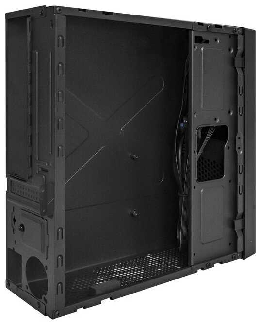 Купил такой корпус без БП для сборки Мини-ПК с возможностью апгрейда. Корпус изначально сделан под серверные БП формата Flex ATX. Два разных пробовал, оба были дорогие, НО шумные. Отказался от идеи использовать БП предусмотренный производителем корпуса, взял болгарку в руки, и удалил всё лишнее, далее взял шуруповёрт и досверлил недостающее. Результат на фото. Получилась очень тихая система. Установил БП Be Quiet TFX power 3 300W Gold BN323. Стал как родной. Для этого удалил два нижних крепления по материнку микро-АТХ, теперь в корпус можно устанавливать только Mini-ITX платы, НО это дало возможность установить тихий БП, причём дёшево. Также установил хороший вентилятор на крышку, 140 мм, ARCTIC F14 PWM PST (ACFAN00219A) на силиконовые шайбы (чтобы подальше от решётки для тишины), который обдувает всю материнскую плату и дополнительно разгоняет воздух для процессорного кулера. Материнка автоматически выставила их на малые обороты, так что их практически не слышно. Кому нужно, тот в БИОСе сам сможет отрегулировать обороты вентиляторов. В корпусе осталось место под дискретную видеокарту Low Profile. Поставил пылевой магнитный фильтр на крышку. Красоту сзади сделал матовым пластиком толщиной 2 мл и закрепил чёрными заклёпками. Процессорный кулер от AMD Ryzen 2600, только заменил на нём кулер на низкий, 92 мм, ID-Cooling, толщиной 15 мм, всё лишнее от кулера отрезал болгаркой, получилось ровно. Место для укладки проводов хватает, причём если уложить ровно то там остаётся много места для движения воздуха. Панель для крепления SSD тоже пришлось немного подрезать, на фото видно. Всё закрылось идеально. Корпус вместительный. Было бы хорошо если бы он уже с завода выходил под БП формата TFX, потому что не всех есть желание так заморачиваться.