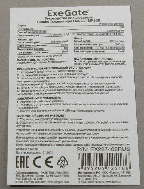 Обзоры и руководства на ExeGate Professional Standard Combo MK330 (EX287402RUS)