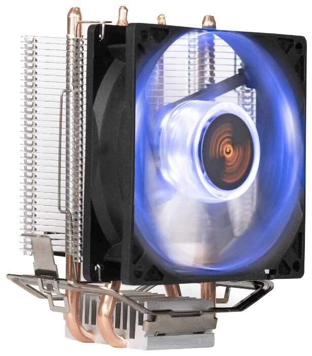 - + 2 тепловые трубки, 90мм вентилятор с синей подсветкой и шим регулировкой оборотов.