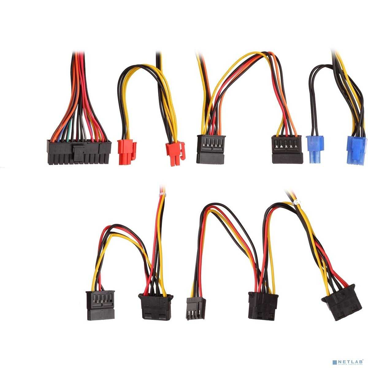 - Включает все необходимые коннекторы: 24-pin для материнской платы, 8-pin CPU, 6+2-pin PCI-e для видеокарты, 3×SATA и 2×Molex.