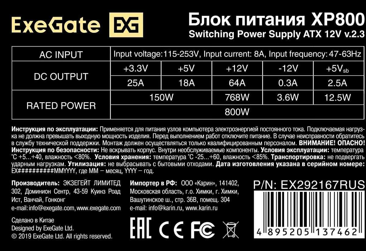 Отзывы о Блок питания EXEGATE XP800 [EX292167RUS]
