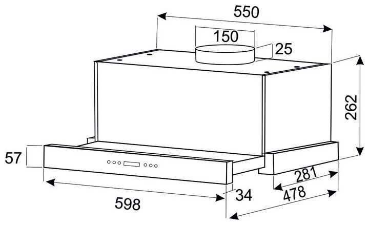 - + Мощный. Идеально подошел под встроенную кухню. 3 режима тяги. Подсветка, часы.