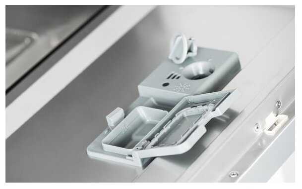 При работе ее абсолютно не слышно, только видно, что горит индикатор, значит она работает. Ширина посудомоечной машины достаточная, чтобы вместить в нее даже кастрюлю. Есть полки для посуды, стаканов и чашек, а также для столовых приборов.