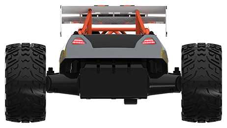 - + Классный внешний вид. Смотрится эффектно! Корпус кажется хлипковатым, по сути на шасси установлен корпус-накладка, который немного пластичен и смягчает удары. За небольшое время эксплуатации нареканий нет. Все на месте и ничего не отвалилось. Большие резиновые колеса просто СУПЕР!