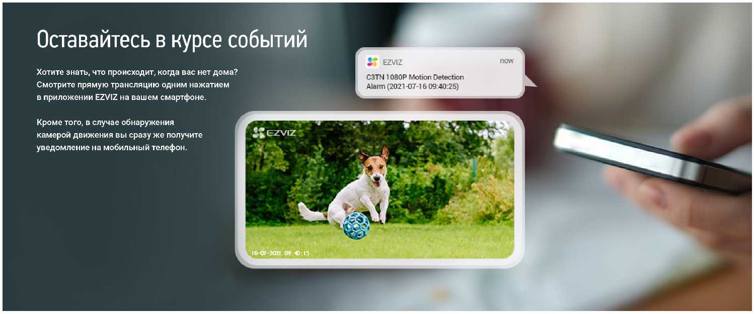 - Push-уведомления в приложении EZVIZ мгновенно оповещают о событиях, что удобно для мониторинга в реальном времени.