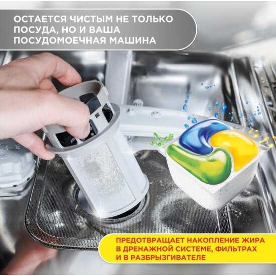Пользователи отмечают, что при регулярном использовании капсул внутренности посудомоечной машины, включая фильтр, остаются чистыми. Средство предотвращает образование накипи и жировых отложений на деталях машины, поддерживая её гигиеническую чистоту и способствуя свежести, что избавляет от необходимости в частых дополнительных чистках самой техники. -