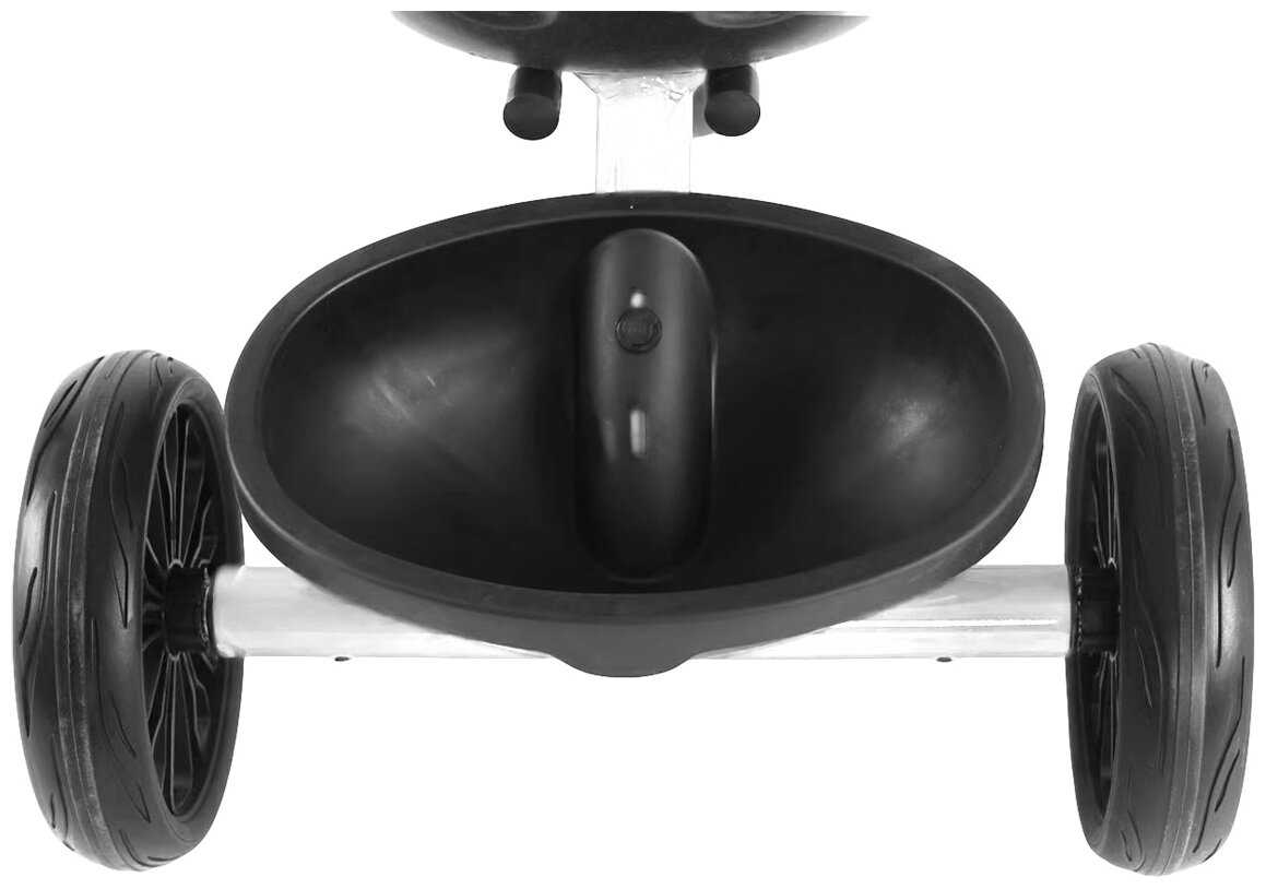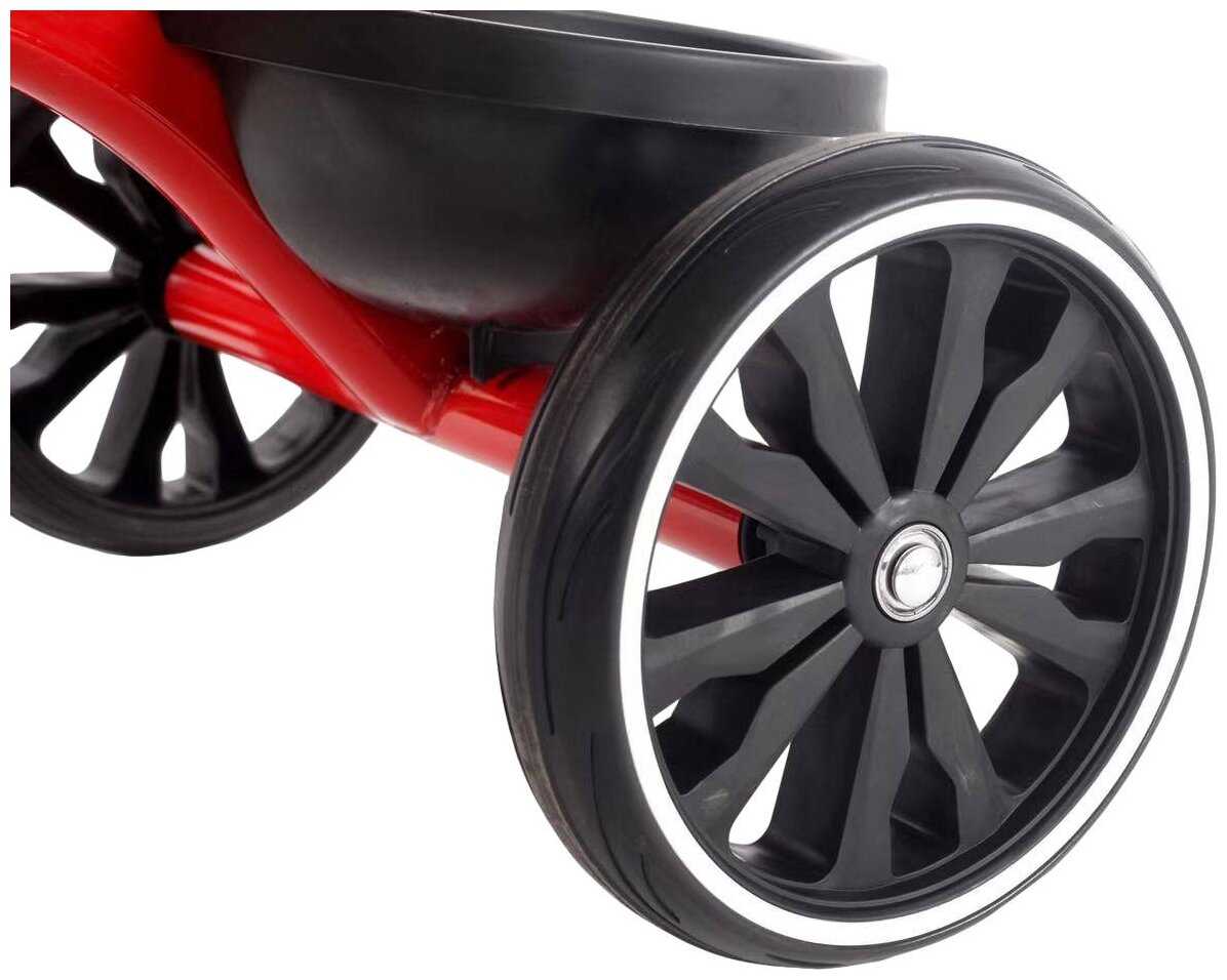 - Большие резиновые или надувные колеса (из полиуретана) обеспечивают плавный ход по паркету, ковру или улице; не требуют накачивания.