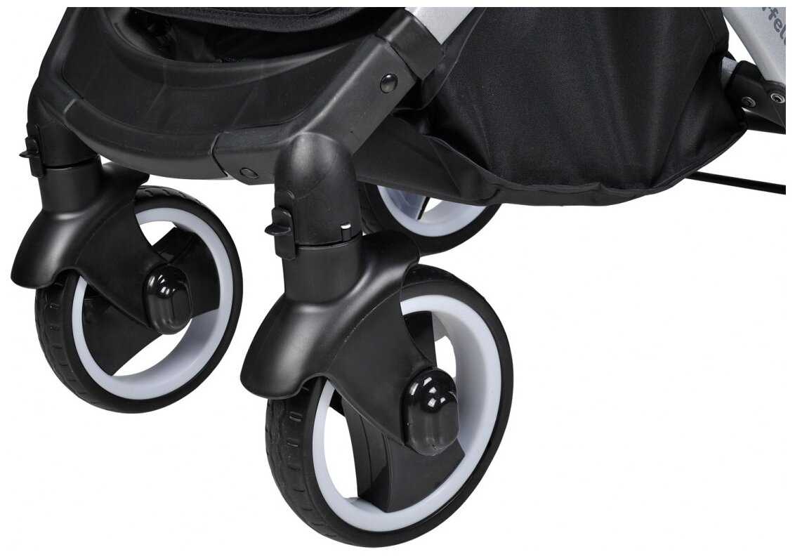 - - Ткань быстро пачкается, нет дождевика и москитной сетки в комплекте, спинка не раскладывается на 180, в результате ребёнок (на момент первого пользование ему было 2 месяца) сползал, пришлось колхозить переноску от универсальной коляски. Плохо держится капюшон когда разложен в максимальном положении, подтянуть нельзя механизм крепиться на заклёпку. При складывании нельзя возить за тканевую ручку, передние колёса блокируют задние, только переноска. Тканевая ручка не понятно зачем прикреплена к основной ручке, носить и возить за неё не возможно. Шарнирные элементы на амортизаторах пластиковые (пока с ними ничего не произошло, но как будут себя вести потом, я не знаю), но пластик нормального качества, возможно даже абс. Колёса мягкие, приходится периодически выковыривать из них острые камни, но материал колёс сам через какое-то время восстанавливает форму и отверстия от камня не видно. Подстаканник потеряли в первый же день, где, даже не поняли.