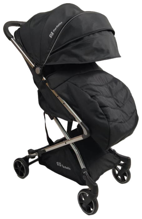 - В сложенном виде коляска занимает 70×40×30 см и весит 7.5–7.9 кг, что позволяет носить её на плече как сумку.