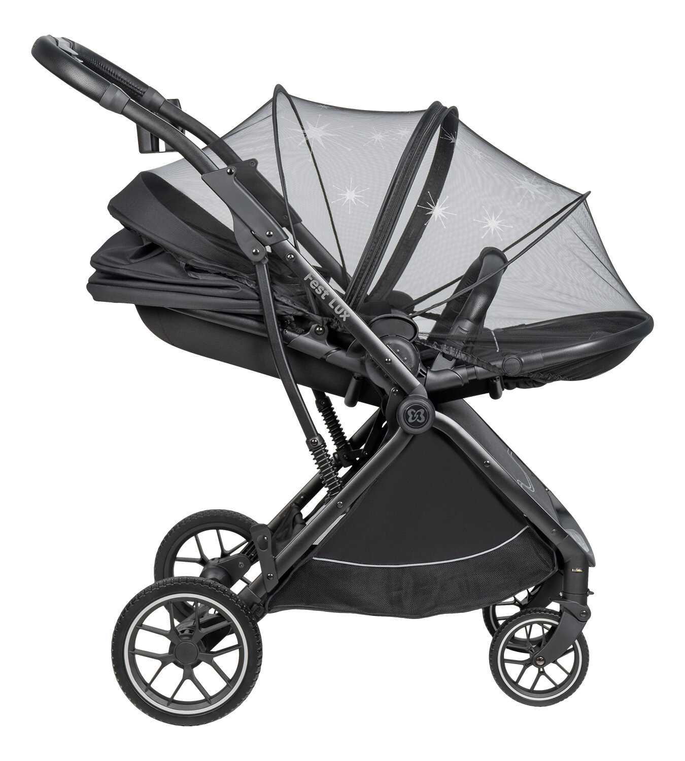| Дополнительная информация : | Можно использовать до 3-х лет, максимальная нагрузка - 22 кг, реверсивный блок, вентилируемое окошко на магните, пружинная амортизация, вместительная корзина для покупок, антимоскитная сетка со звездочками, складывается одной рукой |