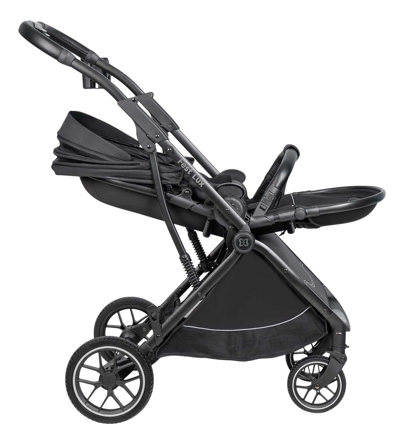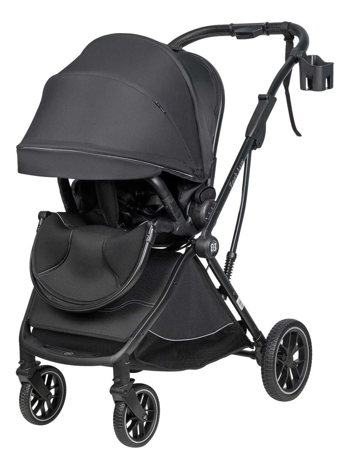 | Особенности шасси : | корзина для покупок, перестановка блока лицом/спиной, съемные колеса |