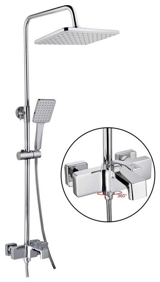 | @Комплектация : | душевая стойка, смеситель, излив, установочный комплект, штанга, верхняя лейка, ручная лейка, шланг |