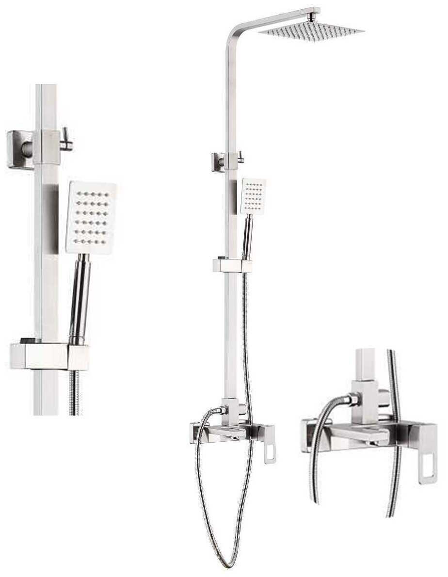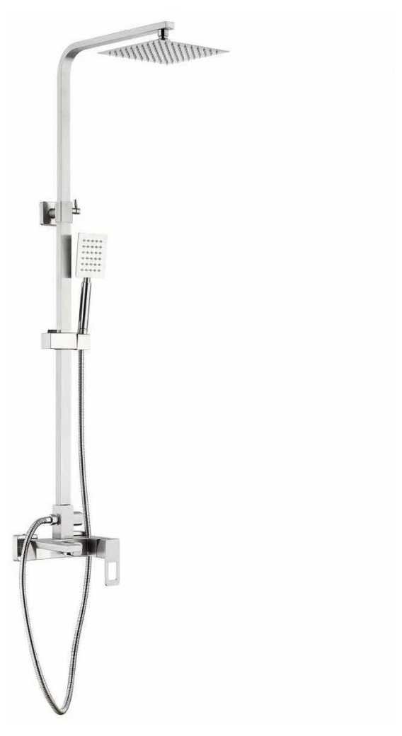 | Дополнительная информация : | смеситель: сталь SUS304, картридж D=35 мм излив: стационарный диверторы: два 2-х ходовых с керамическими пластинами установочный комплект + штанга: сталь SUS304, H=825-1280 мм верхняя лейка: сталь SUS304, антикальк ручная лейка: сталь SUS304, 100х80 мм, антикальк шланг:оплётка сталь SUS304 форма бокового душа: квадратная |