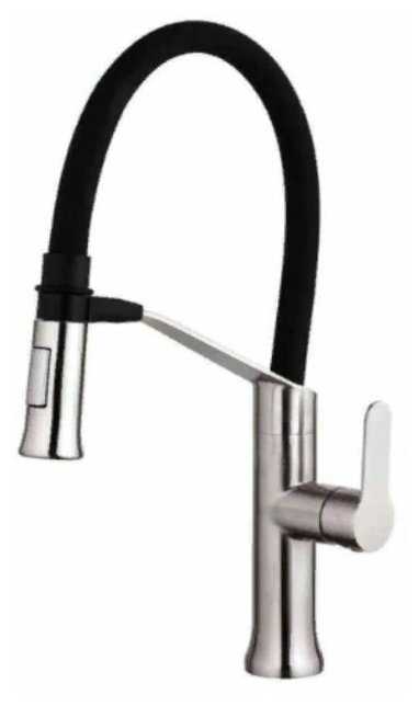 1 отзывов пользователей o Fashun Фашун) Смеситель для кухни (мойки) с гибким изливом, нержавеющая сталь, черный A54501-7