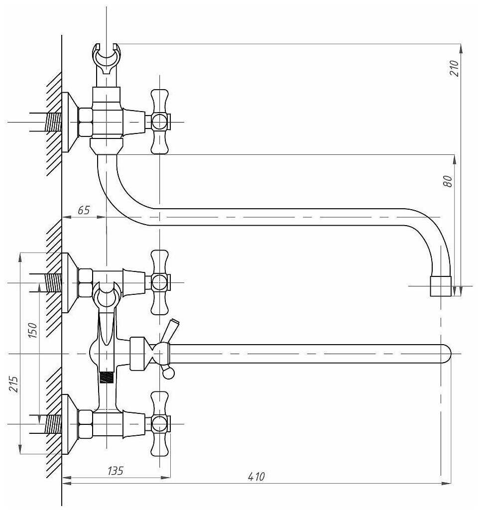 - управление смесителем: вентильное