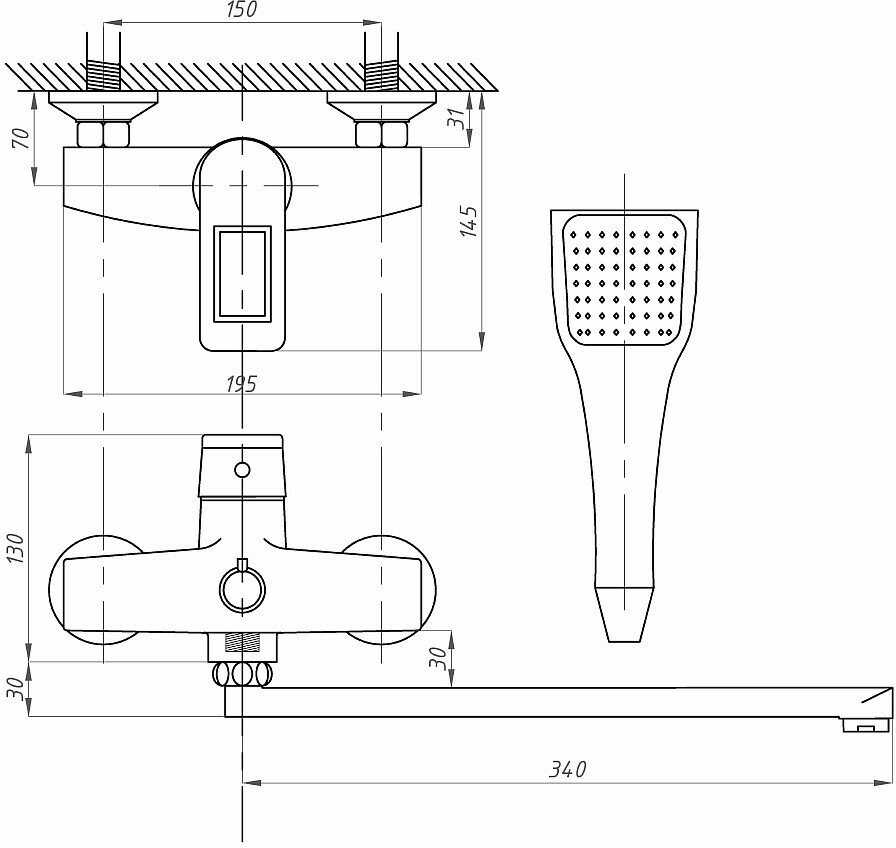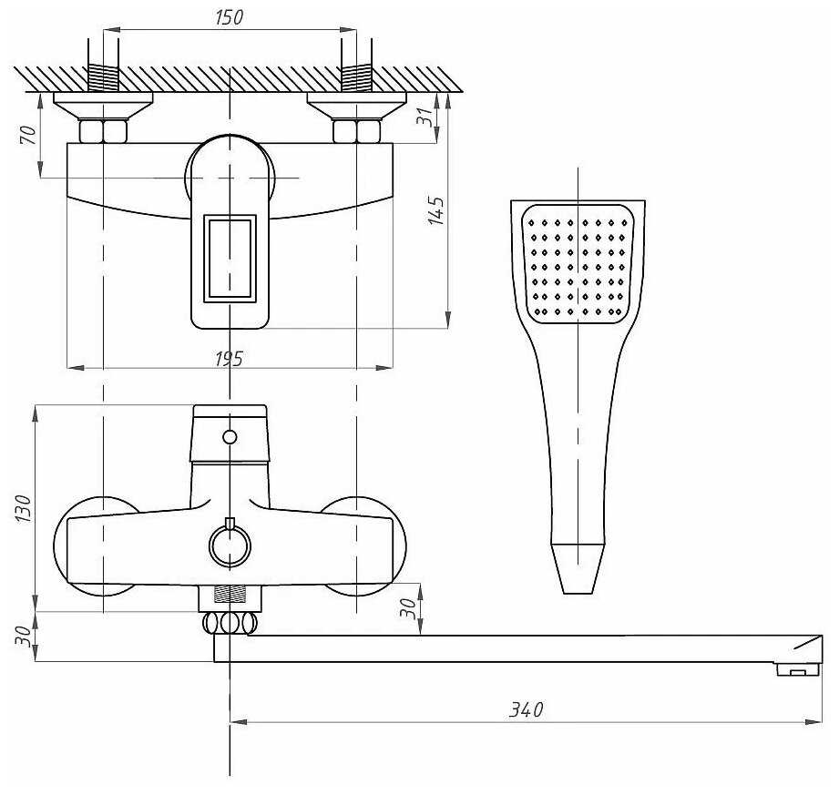 | @Комплектация : | смеситель, эксцентрики-2шт., декоративная шайба (отражатель)-2шт., шланг душевой, лейка душевая, держатель душевой лейки, паспорт |