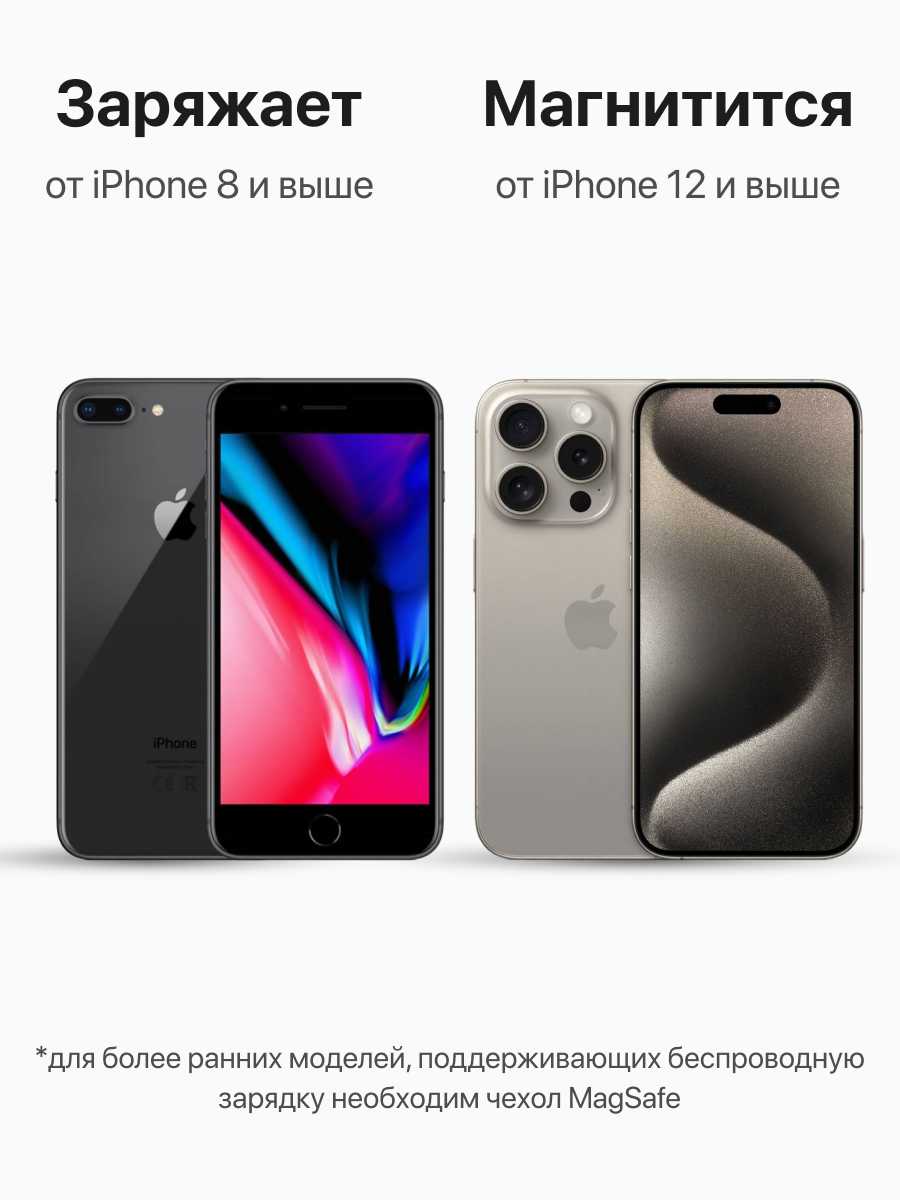 - + Удобный небольшой размер, удобная зарядка от USB-C и беспроводная зарядка